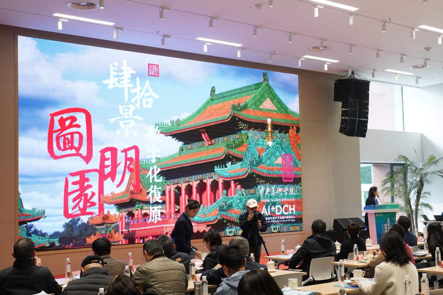 此次研讨会开幕式上,首次发布《圆明园四十景数字化复原及应用》成果,该项目是由圆明园管理处与中央美术学院人工智能与数字文化遗产研究中心历时两年合作完成。通过整合多源历史资料,对清代宫廷画家唐岱和沈源绘制的《圆明园四十景图咏》四十幅分景图进行对位、拼接与校准,组成一幅完整的圆明园四十景全景图;运用中央美术学院复原团队自创清代官式建筑模型数据库及参数化设计、模块化搭建等行业领先数字技术,辅以三维扫描、GIS等技术,完整地呈现了清乾隆九年(1744年)前后圆明园四十景的整体壮丽风貌。