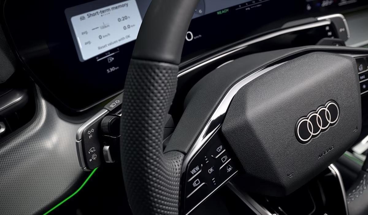 但奥迪Q3其实有自己的特殊性,那就是它遭遇“爆改”的运动方向盘。后方采用了全新组合控制方式,它会通过按键+旋钮+拨动三种方式来提供多功能控制:左侧为灯组+雨刮器等配件、右侧为换挡机构,而辅助驾驶中的拨杆变道也包含在这里,这对于大部分用户来说都是需要一些时间来适应的。