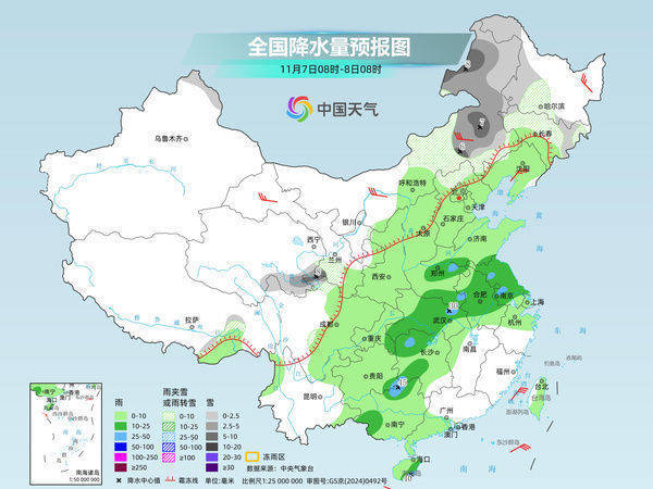 明天,新疆北部和东部、青海东部、甘肃中西部、内蒙古中西部和东北部、黑龙江中北部、河北西北部等地部分地区有小到中雪或雨夹雪,其中,新疆沿天山地区、青海东北部、甘肃河西等地部分地区有大到暴雪,新增积雪2~8厘米,局地10厘米以上。内蒙古河套地区、河南中南部、湖北东北部、安徽中部、重庆东北部、海南岛中东部等地部分地区有中到大雨,其中,海南岛东南部局地有暴雨。
